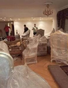 شركتنا تقوم بتغليف الاثاث الشامل فنحن بامكاننا تغليف جميع محتويات المنزل و الاجهزه و الاخشاب و ادوات المطبخ و اطقم الصينى حيث اننا يوجد لدينا كراتين لوضع كل طاقم بمفرده و نضعه فى مكان مخصص فى السياره نعلم جيدا مدى اهميه الصينى لدى سيدات المنزل لذلك يوجد لدينا عماله متخصصه فى تفريغ محتويات النيش بكل نظام و وضع كل طاقم صينى بالكرتونه الخاص به و العنايه التامه اثناء النقل بحيث يصل الى المكان الاخر بدو اى كسر